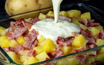 Gratín de patatas con jamón